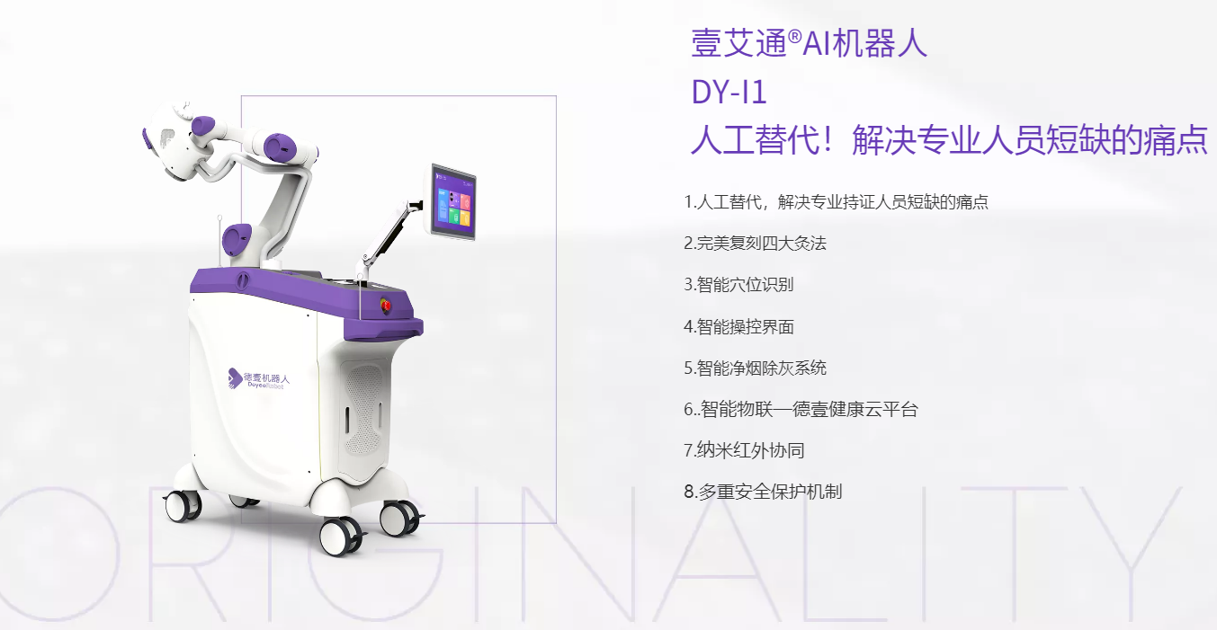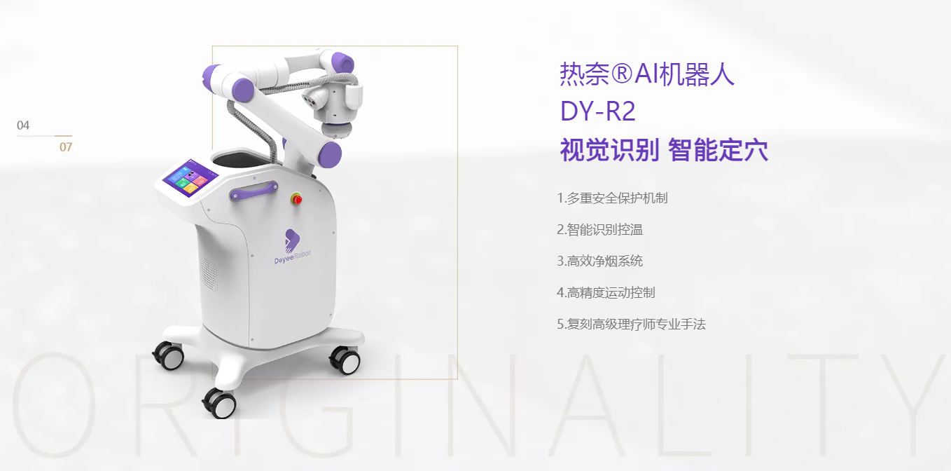 深圳市德壹醫(yī)療科技有限公司成立于2019年,是一家致力于人工智能算法、智能機器人系統(tǒng)研發(fā)、制造、銷售和服務(wù)于一體的全球領(lǐng)先人工智能醫(yī)療機器人企業(yè)。公司在3D視覺算法、六維力控算法、人體穴位智能識別、醫(yī)學(xué)理療等方面掌握核心技術(shù),完成了一套高效精準(zhǔn)的AI機器人理療解決方案。目前公司產(chǎn)品包括熱奈AI理療機器人、熱能王AI砭石機器人、壹艾通AI艾灸機器人、沖擊波AI理療機器人等,廣泛應(yīng)用于醫(yī)院康復(fù)理療科、產(chǎn)后修復(fù)中心、中醫(yī)門診、美容康養(yǎng)機構(gòu)等專業(yè)醫(yī)療機構(gòu)和家庭,深受用戶好評。德壹AI理療機器人的產(chǎn)品在安全性、舒適度和精確性方面領(lǐng)先競爭對手,出貨量穩(wěn)居市場領(lǐng)先地位。