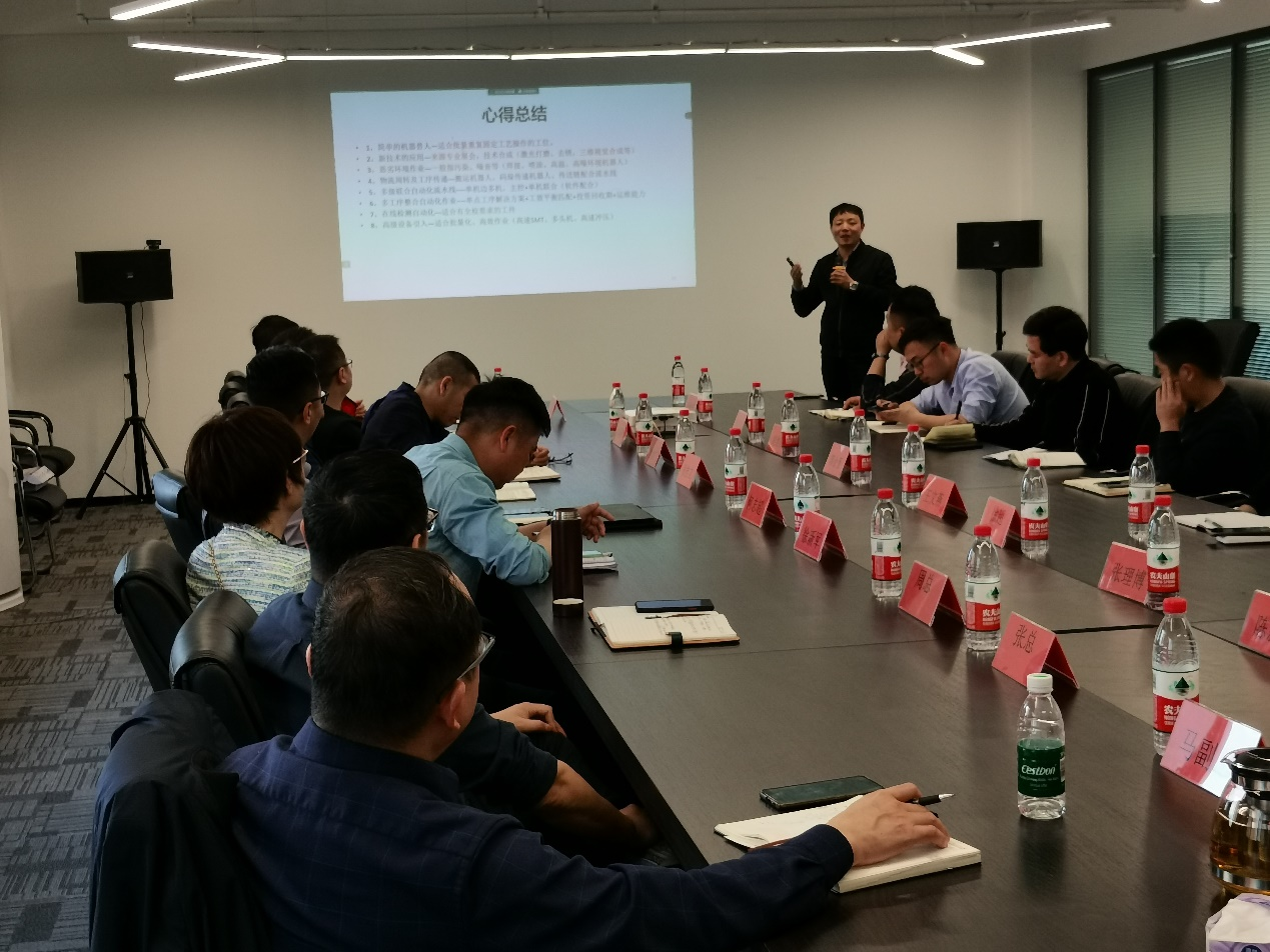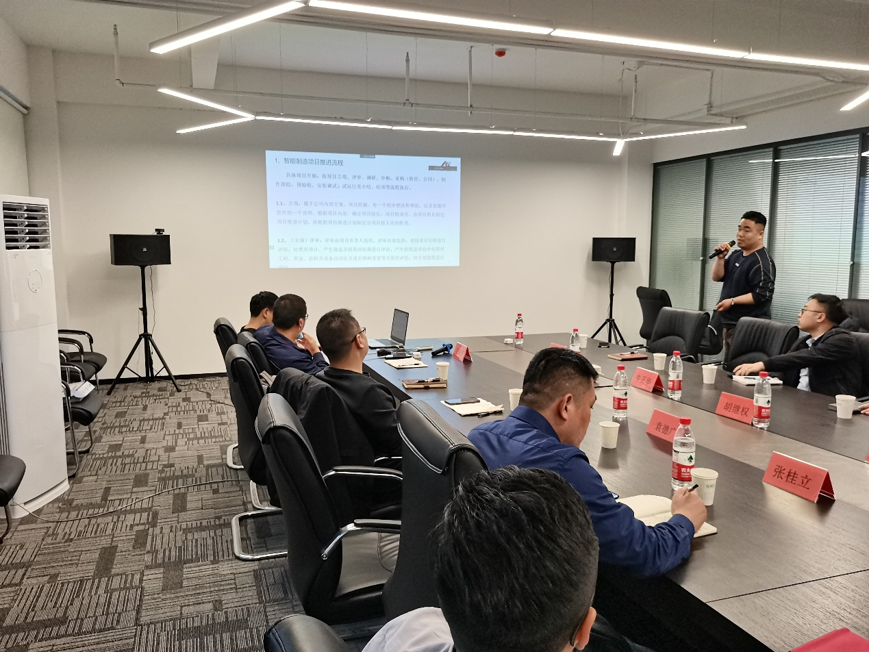 會后,來自浙江移動未來工廠建設(shè)的專家葉總,詳細(xì)講解了未來工廠建設(shè)理論,五化四型十場景打造及建設(shè)案例分享;設(shè)備分部設(shè)備自動化工程師許俊杰介紹了智能制造項(xiàng)目推進(jìn)流程、分享了項(xiàng)目總結(jié)并介紹了智能制造研究院下一階段工作;鄭州柯力設(shè)備管理石振宇分享了自動化設(shè)備運(yùn)維管理經(jīng)驗(yàn)。